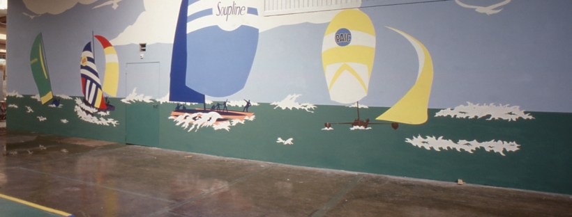 Toujours décorateur en titre de la société Thomas & Harrison, j’ai été missionné pour élaborer une série de grandes décorations murales dans les locaux de l’usine Colgate-Palmolive de Compiègne, en Région Parisienne : d’abord une première série de petites « illustrations » dans l’atelier des liquides, qui a séduit le client puisque l’on me commande alors une seconde intervention, monumentale, dans l’atelier des poudres.