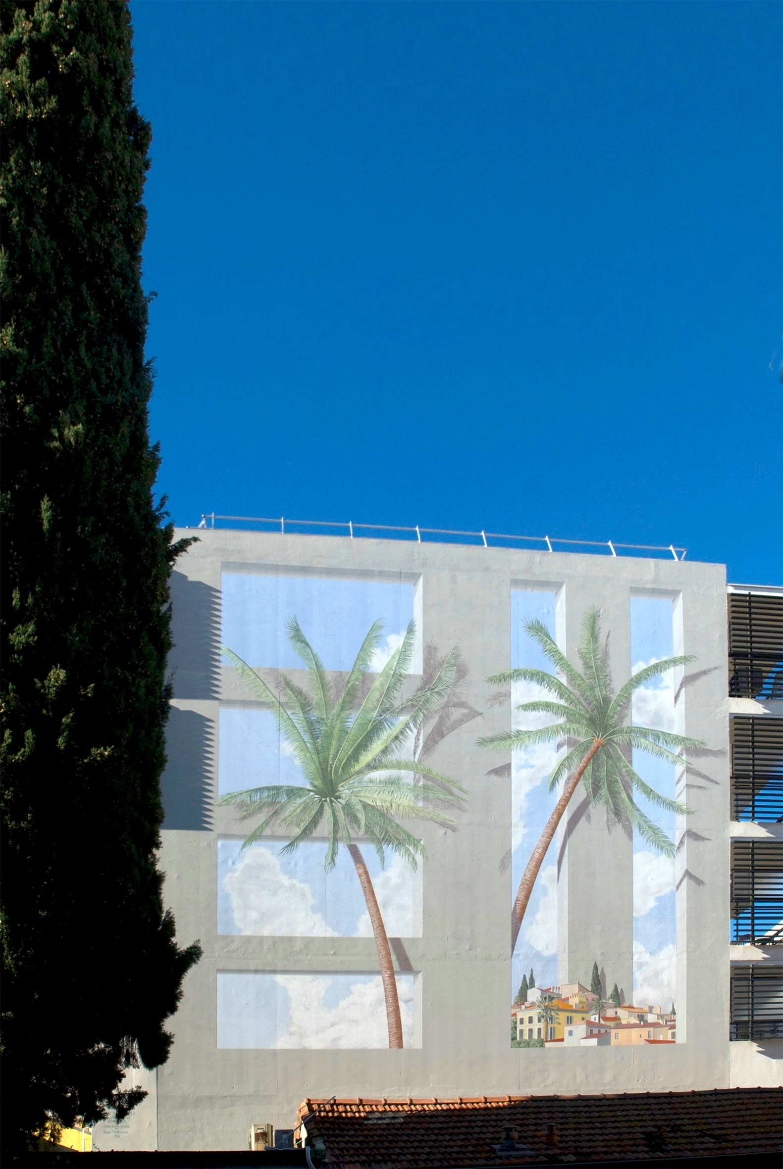 Selon mon « habitude » lorsque j’arrive dans une ville je m’adresse au Maire et je lui propose mes «compétences». Arrivé à Cagnes j’ai improvisé deux ou trois murs pour lesquels j’ai proposé des photos-montages de peintures murales à M. Louis Nègre, alors Sénateur-Maire, et enfant de la Ville.