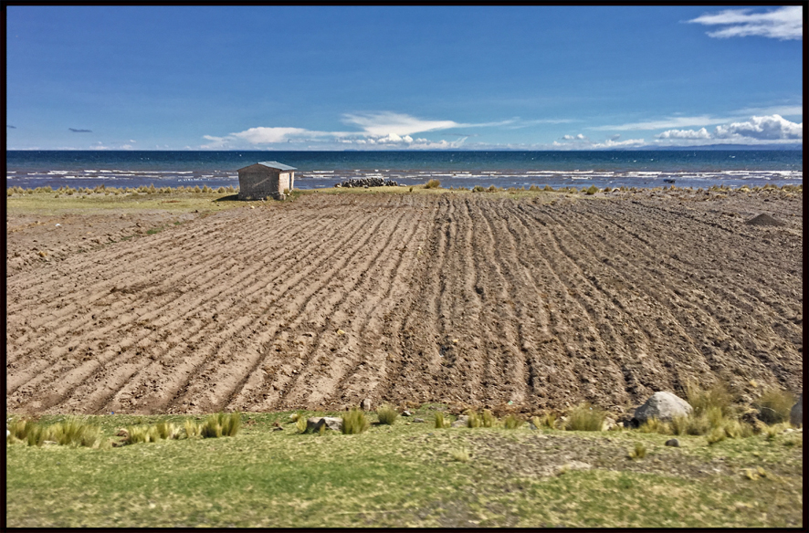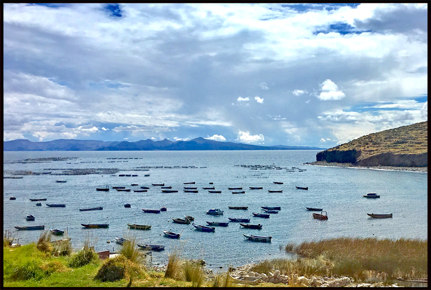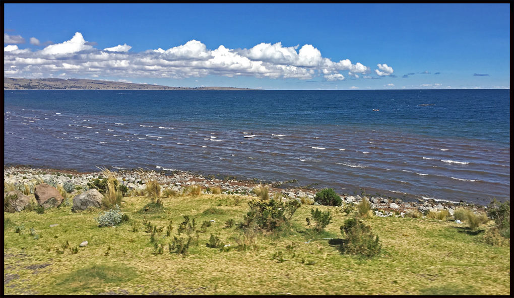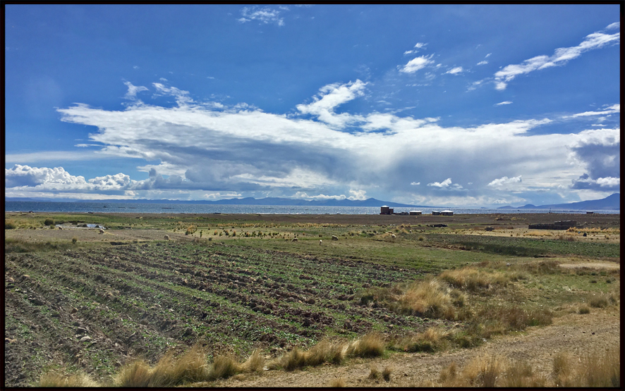 Le lac est partagé entre le Pérou et la Bolivie, situé à plus de 3800m d’altitude, il est réputé calme et abrite des espèce animales endémiques rares (grenouilles géantes…). Son nom signifierait le « Puma pétrifié ». Nous l’avons longé en passant par Puno, puis abordé à partir de Copacabana, petite ville de Bolivie en pleine mutation : en effet, le tourisme y attire des investisseurs, et l’urbanisation brouillon affecte les espaces naturels d’une architecture vraiment malheureuse…
