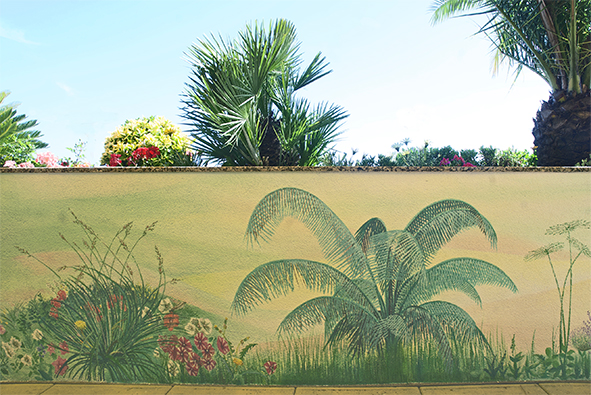 2013- Antibes (Alpes-Maritimes). « Perspective paysagère ». Parc Saramartel, portail de garage privé.(7 m²). Acier peint (anodisé). Peintures spécifiques. Budget : 1 000 €.2012– Juan-lès-Pins (Alpes-Maritimes). « Un jardin suspendu ». Muret garde-corps d’une terrasse. (10 m²). Budget : 2 000 €, mur prêt à peindre.2011- Cannes (Alpes-Maritimes). « Les magnolias » : peinte en atelier sur toile marouflée. (10 m²). Acrylique sur polytoile. Budget : 2000 €