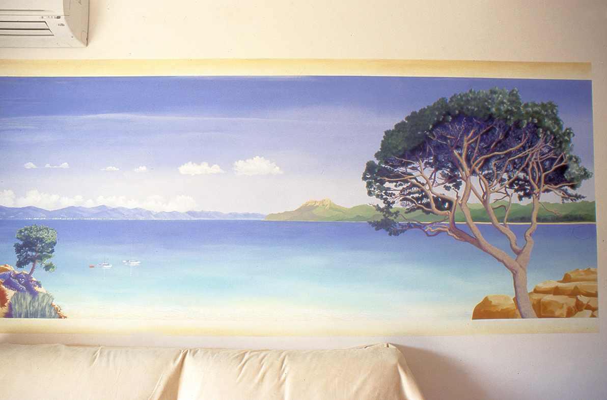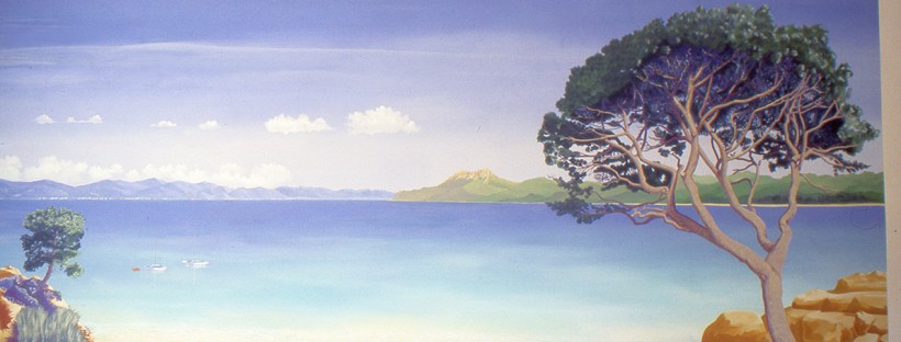 2005- Mandelieu (Alpes-Maritimes). « Mouillage en Provence ». Peinture acrylique sur polytoile marouflée et peinte en atelier. (5 m²). Budget : 1200€