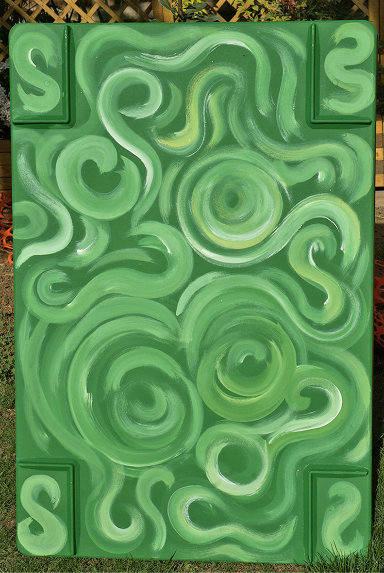 2011. St Laurent du Var (Alpes-Maritimes). Filtre à eau : bassin d’élevage de poissons d’agrément (6m²). Peinture spécifique acrylique. Budget : 500 €.