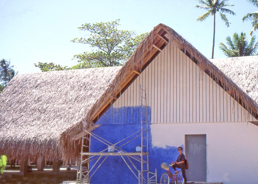 C’est donc sur place que j’ai tenté de retrouver des teintes définies à Paris avec les peintures d’un autre fabricant… Le jour où je tentais de définir teinte et mode d’application sue ce fare central, abritant l’accueil des vacanciers, j’ai eu l’honneur de recevoir ministres et notables en visite officielle sur le chantier. Après les félicitations d’usage, le ministre, souriant, me fait remarquer qu’il est évident, à ses yeux, que ces couleurs ont bien été choisies à Paris : ce bleu est la couleur du parti politique d’opposition ! Et la couleur en cours d’application, à l’autre bout du chantier, sur un autre fare par mes stagiaires en formation est, elle, beaucoup plus recevable : c’est celle de la couleur du parti en place : le sien !