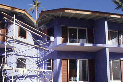 J’ai donc rencontré l’architecte du Club, le responsable des voyages et me voilà missionné pour réaliser la mise en peinture à l’essuyé d’une surface de 7 000 m² de façades de fares (prononcer farés, nom des habitations traditionnelles des îles du Pacifique). Mon double devis devait être de deux natures : prise en charge de la mise en œuvre de toute la surface de murs ou, deuxième offre, formation des applicateurs tahitiens pour les confier à l’entreprise en charge des travaux de peinture sur site. Souhaitant vivement pouvoir peindre les 7 000 m², j’ai donc gonflé le devis de formation, à 8 000,00 francs/jour, tout frais payés, qui … est passé ! Sachant que je partais avec une prévision aléatoire de la durée de formation…!