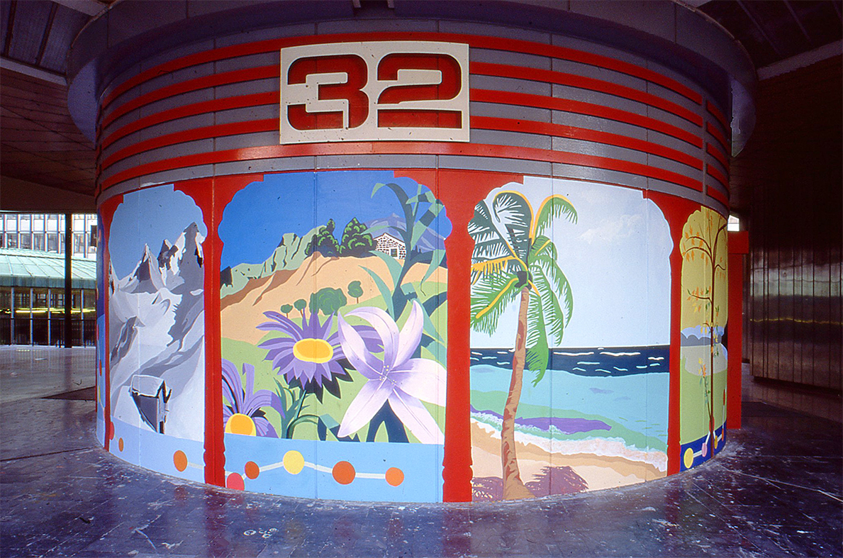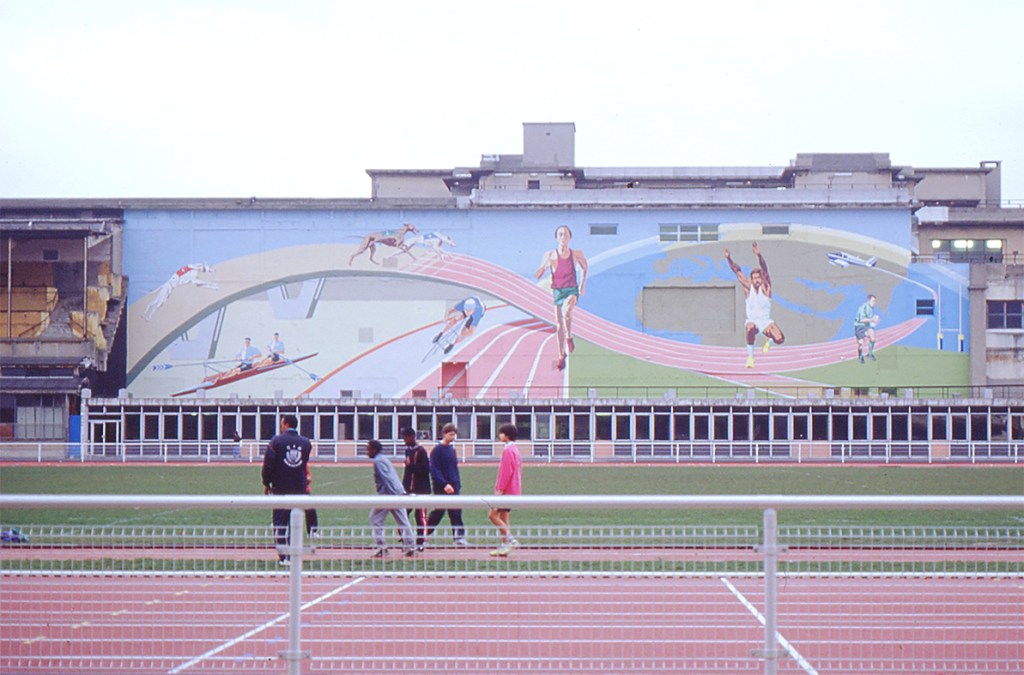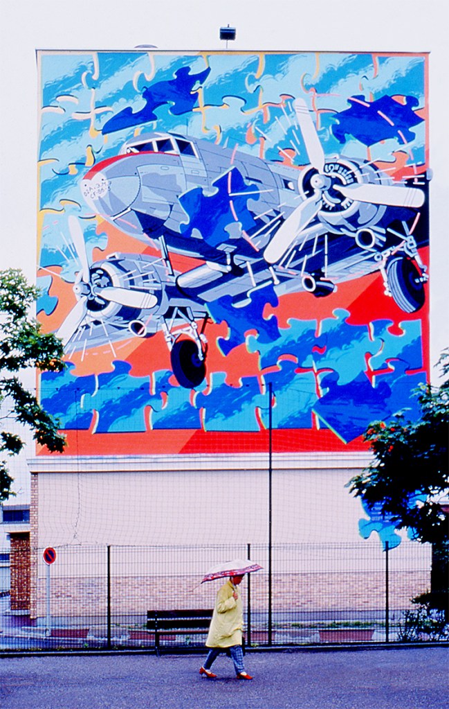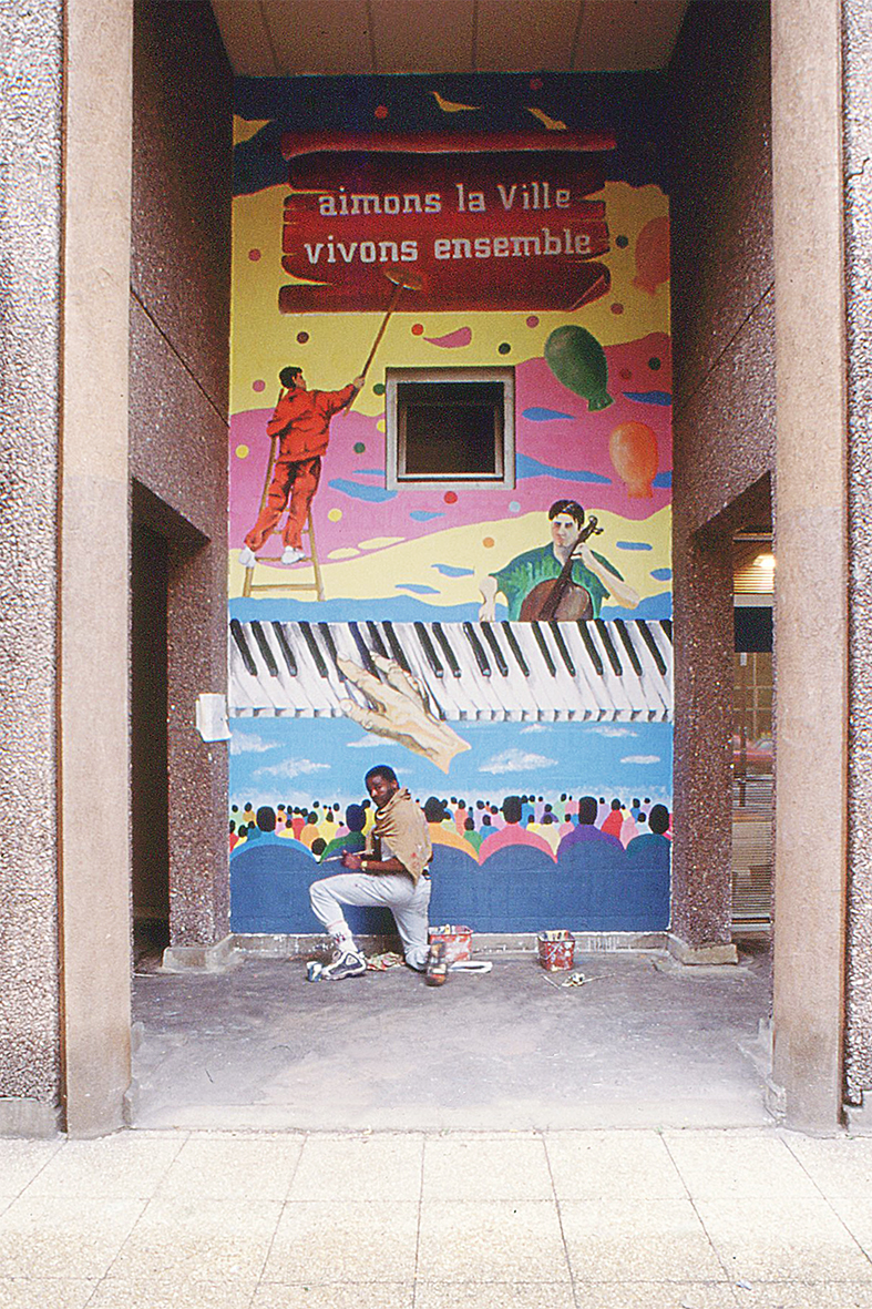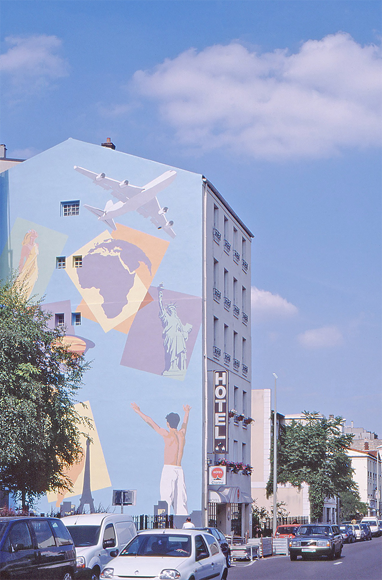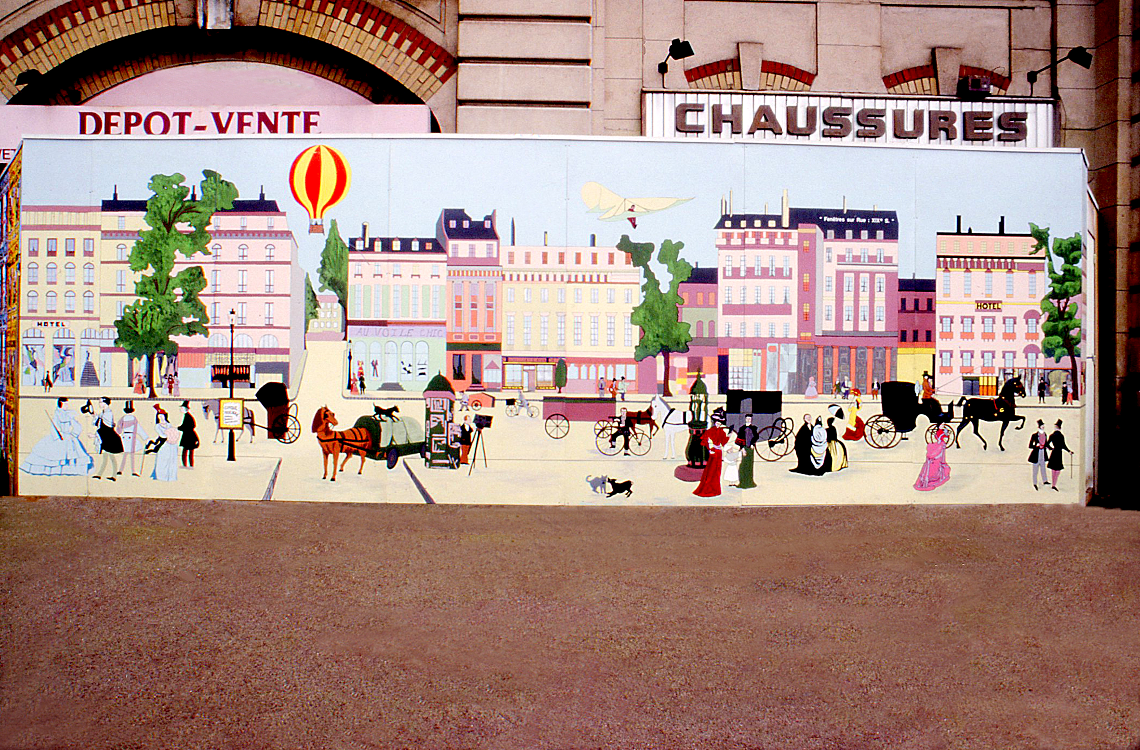 1996. BONDY (93). Pont Polissard. Deux faces de la pile béton d’un auto-pont. (70 m2 env.). Chantier adultes. Cette année voit la mise en avant publique des « bébés » (publicités) : ils apparaîtront sur deux chantiers pourtant très éloignés ! Peinture acrylique.1996. BONDY (93). Pont Polissard. Deux faces de la pile béton d’un auto-pont. (70 m2 env.). Chantier adultes : deux piles traitées. Peinture acrylique.1996. BONDY (93). Pont Polissard. Deux faces de la pile béton d’un auto-pont. (70 m2 env.). Chantier adultes : deux piles traitées, même sujet la deuxième pile, en rouge.1996- MONTREUIL SOUS-BOIS (93). Piscine municipale (90 m2 environ). Chantier adultes.1996. LA PLAINE St-DENIS (93). Station de RER. Stage adultes. (130 m2 env.). Peinture minérale.1996. MONTREUILsous-Bois (93). Quartier des Ruffins, stage de jeunes. (60 m2 env.). Peinture acrylique.1997. BONDY (93). « Galatée ». Participation de l’entreprise de vente produits de pêche ! Stage d’adultes (60m2 env.). Peinture acrylique sur soubassement béton.1997. COURBEVOIE (92). « L’esprit du lieu ». Deux groupes de stagiaires (jeunes et adultes). (800 m2). Peinture acrylique sur un mur d’attente…(aujourd’hui disparu)1997. MONTREUIL-sous-Bois (93). « Montr’œil ». Entrée de la rue commerçante. Stage de jeunes. (50m2 env.). Mur enduit ciment. Peinture minérale. (aujourd’hui disparu)1998. BONDY (93). « Le voyage ». Stagiaires adultes. Pile béton et soutènement d’un auto-pont. (110m2 env.). Peinture acrylique.1998. LE RAINCY (93). « XIXe siècle et saltimbanques ». Deux palissades de chantier. (50 m2 env.). Peinture acrylique. 1998. MONTREUIL-sous-Bois (93). « Aimons la ville, vivons ensemble ». Groupe de jeunes. (2x15m2). Peinture acrylique.1998. STAINS (93). « Hommage à Victor Renelle » résistant qui a donné son nom à cette résidence. Groupe de jeunes. (100 m2). 3 réalisations : inauguration ministérielle (Mme M.-G. Buffet) Peinture acrylique sur isolation extérieure neuve.1999. STAINS (93). Cité Victor Renelle. Stage adultes (100 m2). Peinture acrylique sur isolation extérieure.1999. STAINS (93). « Débarqués ». Cité Victor Renelle. Stage adultes (100 m2). Peinture acrylique sur isolation extérieure.1999. BOBIGNY (93). DDJS. « Olympiades ». Groupe de jeunes. (75 m2 env.). Peinture acrylique sur mur enduit ciment.1999. BONDY (93) « Le Passage ». Chantier adultes. Pile béton de pont autoroutier. (35 m2 env.). Peinture acrylique.1999. BONDY (93). Chantier adultes. Pile béton d’un auto-pont. Groupe d’adultes. (70 m2 env.). Peinture acrylique,1999. PARIS. Université de Paris VI-Jussieu. Stage de jeunes. Cage d’escalier d’accès aux salles et amphithéâtres. (50 m2 env.). Mur de béton. Peinture acrylique. 2000. ATHIS-MONS (91). « Le vieil Athis ». Impressionnisme. Accès à une zone piétonne. Stage de jeunes. (60 m2 env.) Peinture minérale.2000. COURBEVOIE (92). « Voyage ». Stage de jeunes. Façade de l’Hôtel Clarine (120 m2 env.). Peinture acrylique.