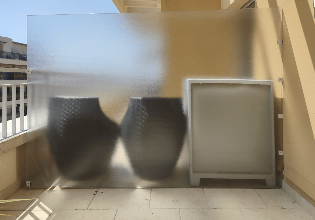 Un appel téléphonique de cette habitante de Cannes, m’informe vouloir occulter au plus tôt la vue vers ses voisins pour ne pas subir au travers de la paroi mitoyenne en verre …l’envers de leurs mobiliers…!