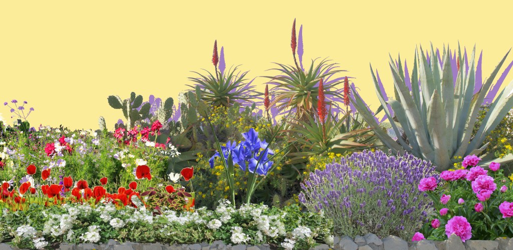 L’idée d’un « parterre » de fleurs est vite adoptée, je dois donc proposer des plantes parmi ses goûts qui me sont indiqués… dont les iris, qui ne seront évoqués qu’après la premières esquisse !