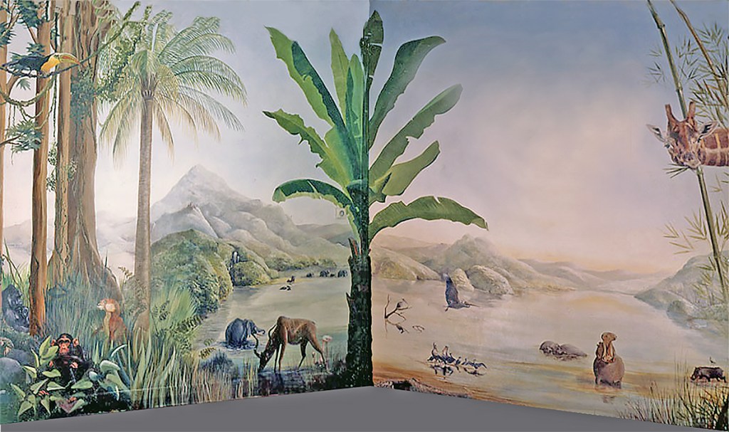 Un cabinet de décor me sollicite pour la réalisation d’une peinture destinée à la résidence secondaire en Normandie de la fille du couturier parisien Jean-Louis Scherrer. Laetitia Scherrer se posait alors en défenderesse des espèces en voie de disparition, et souhaitait en faire le thème de son décor.