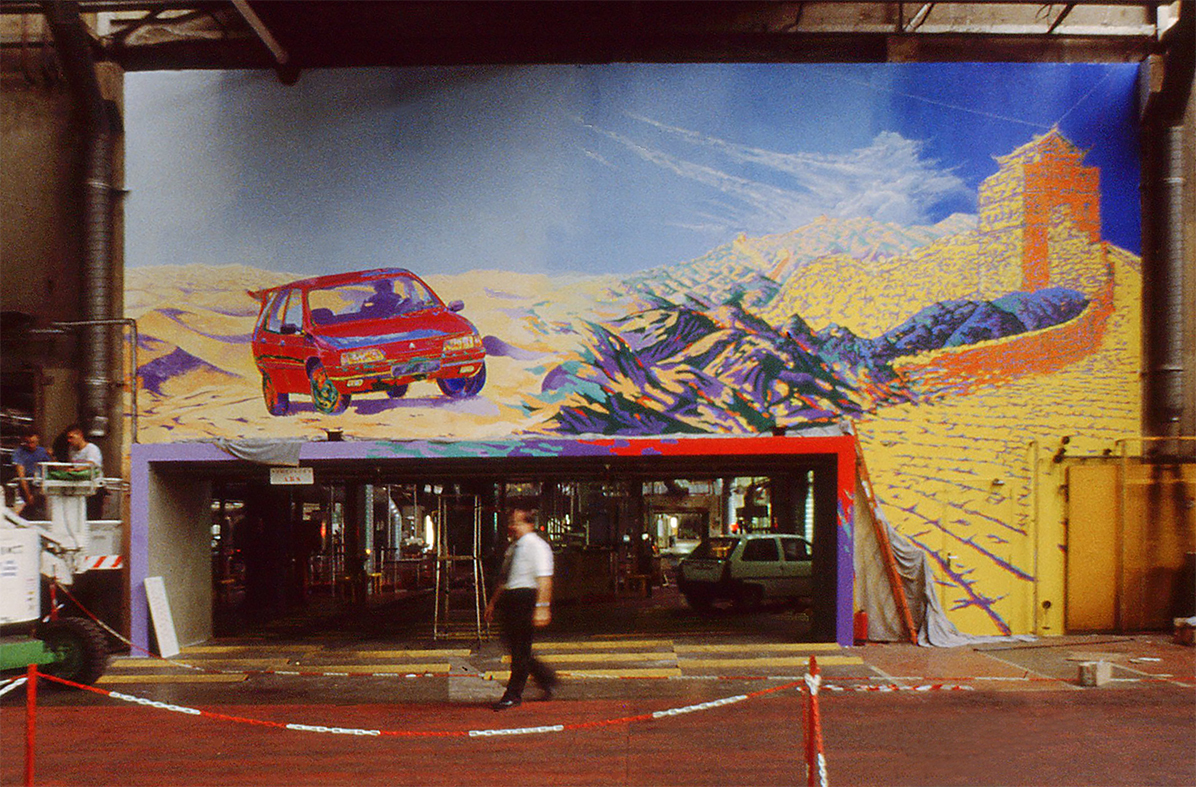 Usine Citroën d’Aulnay-sous-bois. C’est dans la cadre de la politique de communication interne de l’entreprise que cette peinture a été réalisée après la victoire de la ZX au « Rallye Paris-Pékin » en 1992.